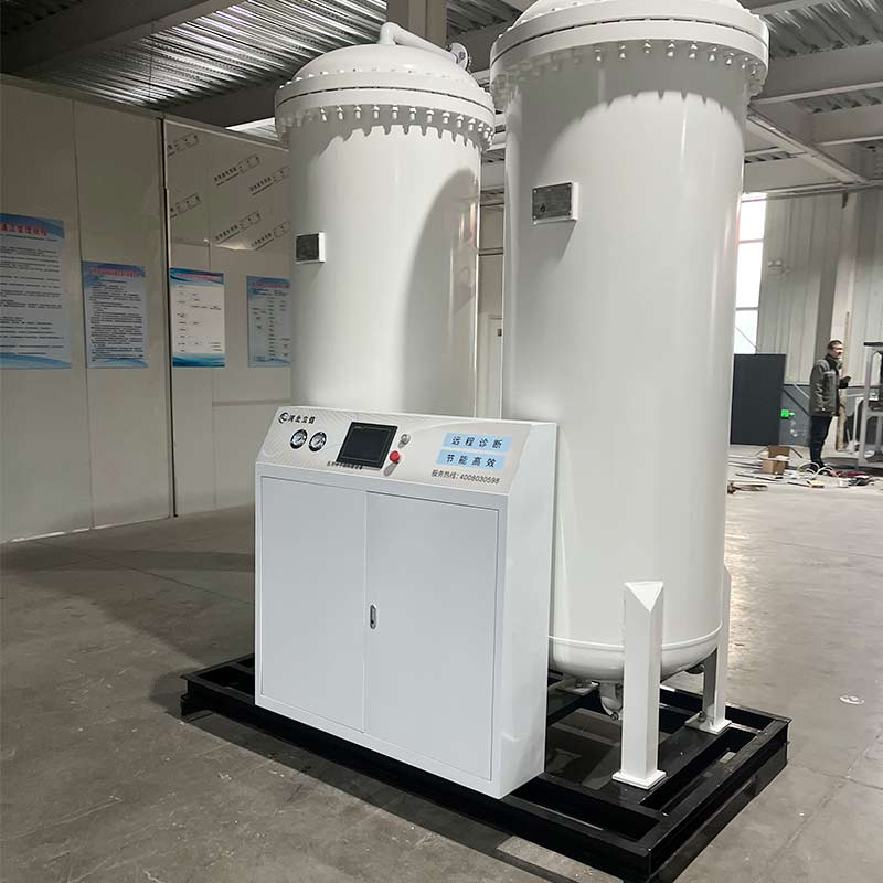 1、高效制氧:采用變壓吸附(PSA)技術(shù),通過裝有沸石分子篩的吸附塔,在加壓時(shí)將空氣中的氮?dú)馕?,剩余未被吸附的氧氣被收集起來,?jīng)過凈化處理后成為高純度的醫(yī)用氧氣。